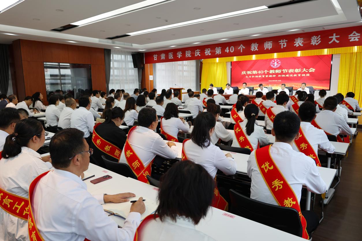 一年年春华秋实,一载载桃李芬芳。9月10日,Beat365唯一官方网站在3号教学楼6 楼会议室召开庆祝第40个教师节表彰大会,回顾总结一年来学校教育教学工作取得的成绩,表彰奖励先进集体和先进个人,分析面对的形势任务,动员引导全校上下认真学习贯彻刚刚召开的全国教育大会精神,大力弘扬教育家精神,踔厉奋发,勇毅前行,全面落实学校“12226”发展思路,奋力谱写“教育强国、甘医有为”的时代篇章,为早日建成开放的现代化新型应用型高等医学院校作出积极贡献。党委书记汪永锋出席会议并讲话,校长王坤主持会议,校领导杨建福、雷鹏举、李岳、刘凯出席会议,学校本部教师和附属医院医护人员、平凉市第二人民医院、白银市中心医院代表参加会议。