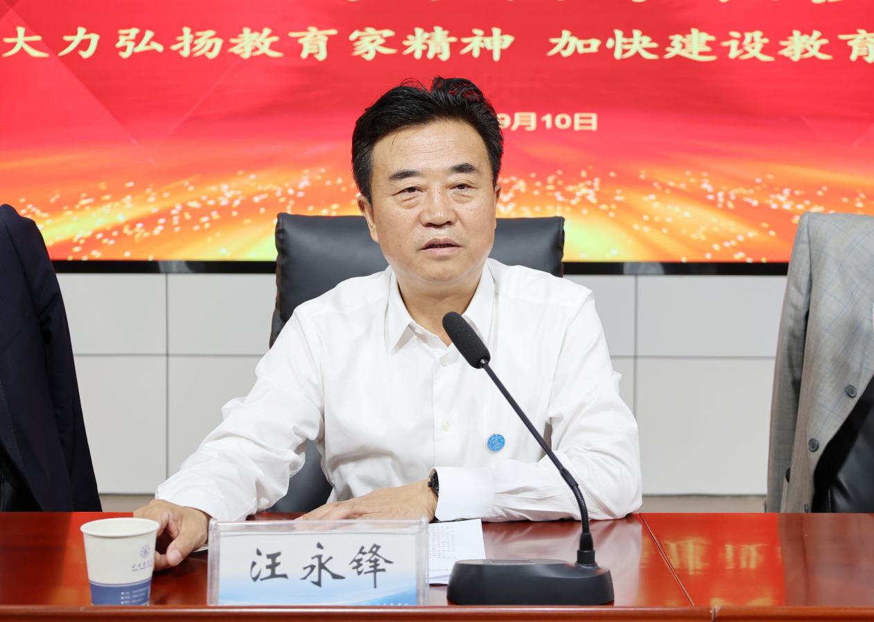 汪永锋代表学校,向全体教师和教育工作者提出五点期望:要珍惜荣誉,牢记使命,树立崇高的职业荣誉感,坚定维护学校的声誉,在荣光中践行使命担当。要解放思想,改革创新,提升能力,爱岗敬业,不断充实和完善知识结构体系,努力站在医学知识发展前沿,真正成为学生锤炼品格、学习知识、创新思维、奉献祖国的“引路人”。要担当责任,培育英才,扛牢“责之重者”,以更加开阔的视野、更加深邃的认识、更加坚定的信念、更加崇高的使命,牢记“国之大者”,尽心尽责,勇担培养未来医疗卫生领域栋梁和祖国建设接班人的重任,努力形成教师敬业、学生乐学的良好氛围。要奋发有为,从严治校,坚持“学术研究无禁区、课堂讲授有纪律”的基本原则,站稳讲台,站正讲台,旗帜鲜明讲政治,对各种政治性、原则性、导向性的问题及时发现、果断处置。