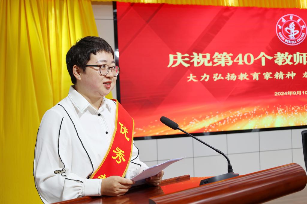 党委副书记李岳宣读表彰决定,校领导为获奖集体及个人颁发荣誉证书,优秀教师代表黄晶、优秀教育工作者代表尚碧波先后发言。