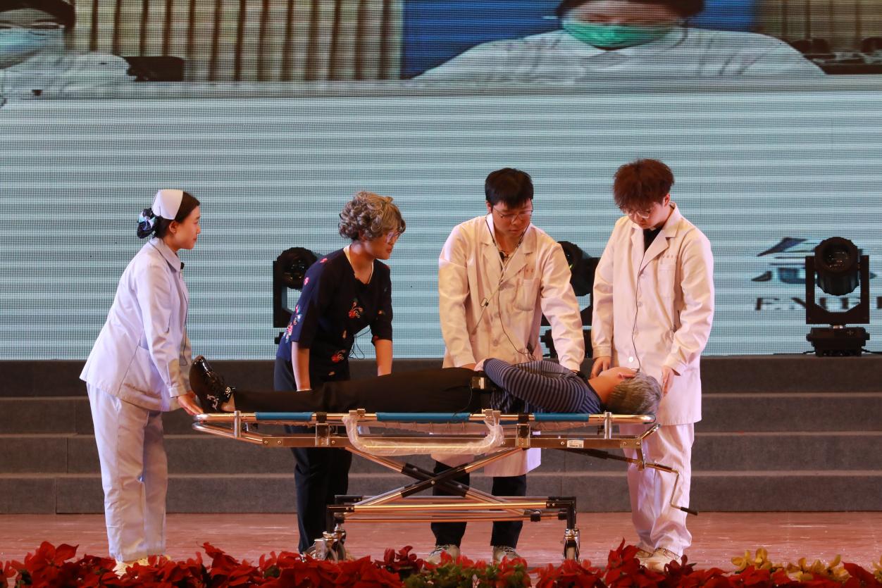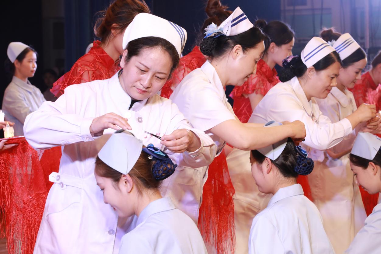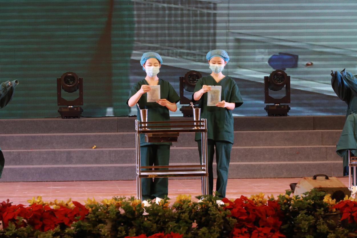 文艺展演通过授帽仪式、情景剧、礼仪展示等形式,立体呈现护理职业的精神内涵。改编自护生真实经历的情景剧《医路・成长・担当》,重现急诊室与死神博弈的紧张场景,传递“白衣亦能托举生命”的坚定信念;护士礼仪展演《天使礼韵》通过规范优雅的举止,展现护理工作中“以患者为中心”的细节关怀;最引人注目的授帽仪式上,护士长与临床资深老师亲手为护生代表戴上燕尾帽,这一庄重仪式象征着南丁格尔精神的代际传承,也标志着护生们对“健康所系、性命相托”誓言的郑重承诺。此外,手语操《守望生命的花开》、诗朗诵《白衣燕尾,不负青春》等节目,以艺术形式深情礼赞护士群体在平凡岗位上的无私奉献,引发全场强烈共鸣。最后,活动在《把未来点亮》的合唱声中圆满落幕。