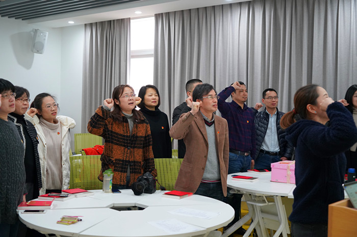 陈云飞简要介绍了19位过集体生日的党员同志的基本情况,潘煜双代表学院党委向19位同志赠送了《新中国极简史:19492019的年度故事》一书,另外,与会党员每人还获得了一张“政治生日贺卡”。“政治生日”现场庄严又不失活泼,温馨的礼物和祝福营造了浓浓暖意。会上,全体党员面对鲜红的党旗,高举右拳,重温入党誓词,向党庄严而郑重承诺,再次接受心灵的洗礼。