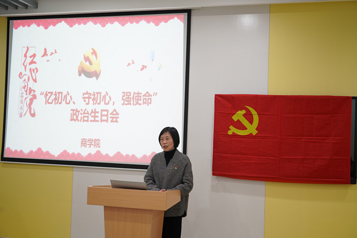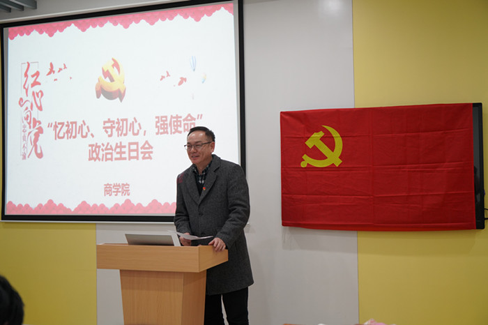 在“谈谈入党以来的感悟”环节,入党30年的周国胜同志感言:自己一路走来,靠的就是热爱本职的初心,十分感恩组织的关怀,也为学校的改革发展自豪,作为一名老党员将牢记作为教师的使命,永不懈怠的学习、工作。入党15年的章俊杰同志感言:自从入党之日起,党员的政治生命就开始了,但是要想政治生命长寿、健康就要永远牢记自己的第一身份是共产党员、第一职责是为党工作,为国育人。入党5年的黄熠同志则回顾了自己入党时的场景,表示在参加工作的第一年、第一次过政治生日意义不同一般,更感受到一种神圣、责任和使命,今后会牢记党员身份,严格要求自己,为共产主义事业奋斗终身。三位同志朴实无华的表白、对事业无限忠诚的情怀赢得了现场所有党员阵阵掌声。