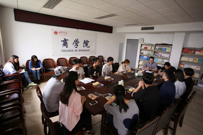 为进一步做好教学工作,加强师生互动, 420日,市场营销系在教一604召开学生代表座谈会。市场营销系钱大可、翁胜斌、方芳三位教师作为教师代表和14、15、16三个年级的同学代表座谈。
