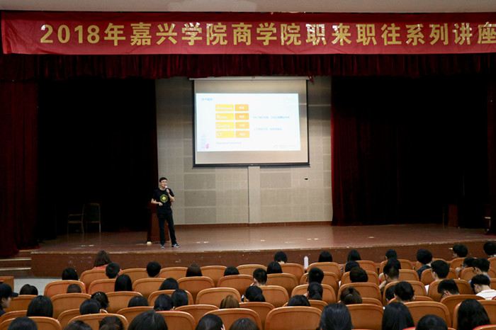 411日晚,太阳成集团tyc122cc“职来职往”系列讲座在越秀校区第二教学楼报告厅启动,首讲主讲人为阿里集团客户体验事业群高级专家刘永兴。来自阿里巴巴-嘉兴学院客户体验产学研基地的负责人、太阳成集团tyc122cc学工办部分老师以及太阳成集团tyc122cc15级学生到场聆听。