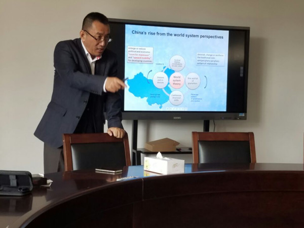 李形教授从经济和政治两个维度解读中国的崛起,他认为,中国崛起与现行世界秩序之间存在着既冲突又共生的辩证关系,中国的崛起必然会使这一崛起过程成为世界秩序演进的一部分。讲座后,李形教授与现场教师进行了热烈的互动。