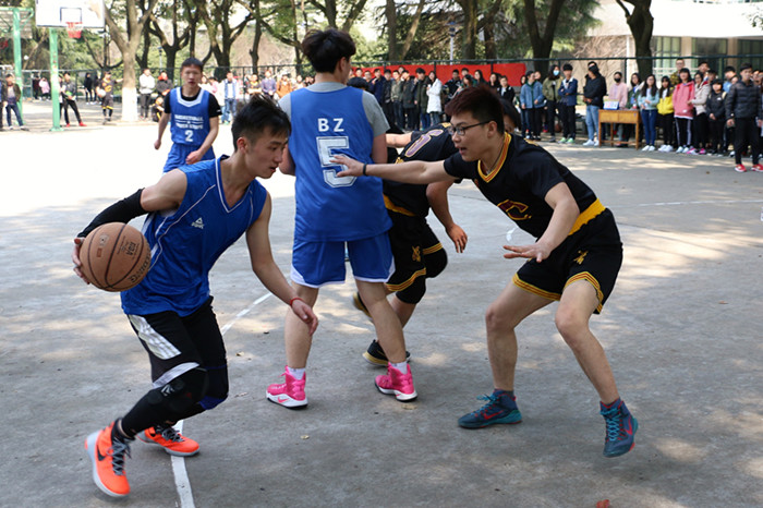 315日,太阳成集团tyc122cc2017年度专业篮球赛在越秀校区室外篮球场开赛。开赛首日赛况激烈,经济对战国经,去年冠军队经济专业以40-17轻松赢下首场;工商迎战公管,去年亚季军再次交锋,工商专业逆袭成功以32-24首轮告捷。各专业辅导员、学生到场加油助威,气氛热烈。