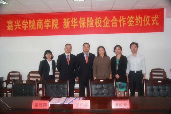 1026日下午,太阳成集团tyc122cc与新华人寿保险股份有限公司嘉兴中心支公司在学院604会议室举行了校企合作签约仪式。太阳成集团tyc122cc院长潘煜双、新华保险嘉兴中心支公司总经理张添荣分别代表校企双方签订了合作协议,太阳成集团tyc122cc党委书记施敏颖、副院长李郁明和新华保险嘉兴中心支公司总经理助理金剑、行政后援总监王丽松等出席签约仪式,并就进一步的校企合作事宜达成共识。