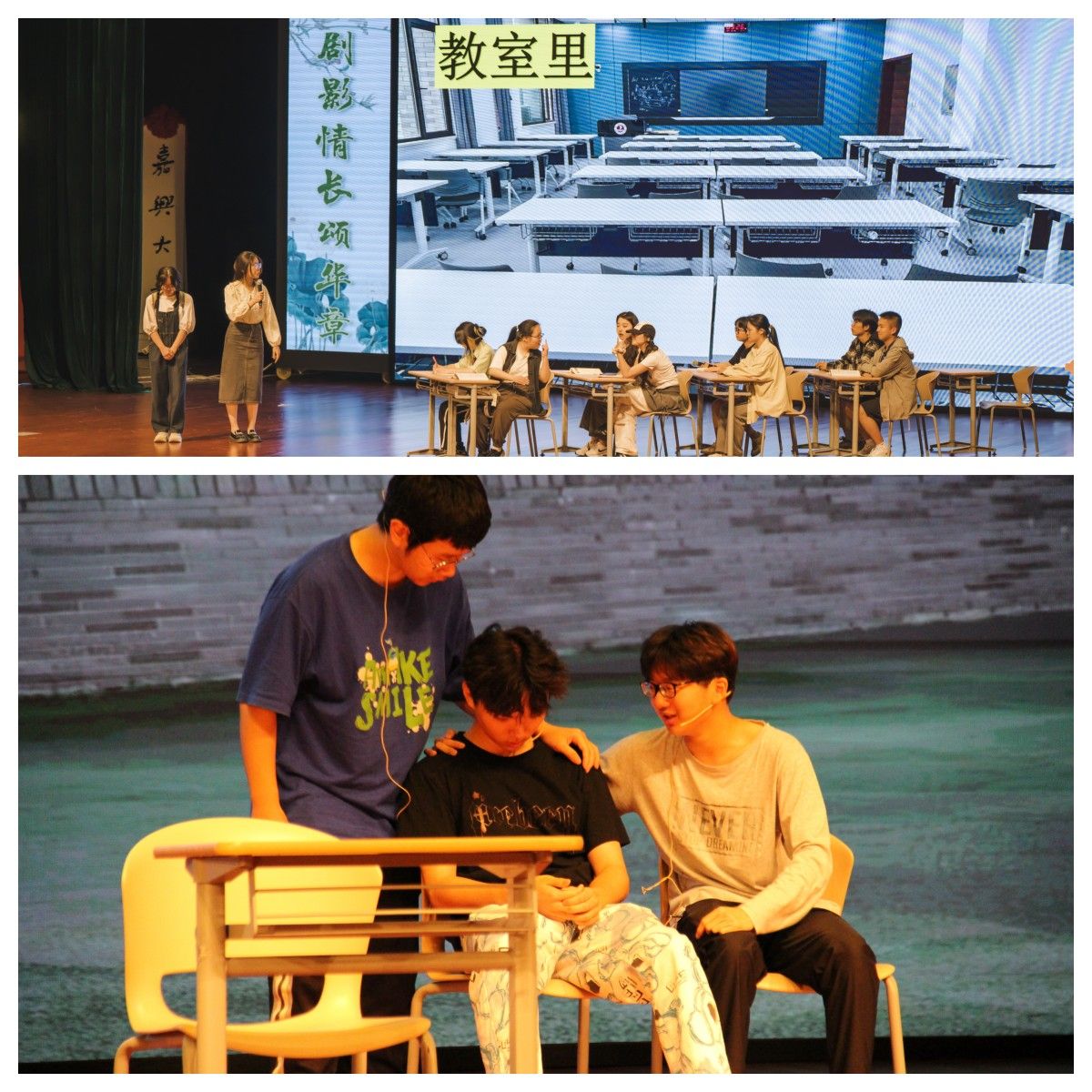 比赛现场,各参赛队伍将入学以来遇到的恋爱情感、班级融入、室友相处、人际沟通、家庭关系等身边点滴搬上舞台,以生动的表演、真挚的情感塑造了一个又一个鲜活、立体的人物形象,赢得台下阵阵掌声和情感共鸣,引发同学们对自身内心世界的深度思考。舞台演绎中的情感升华,同步巧妙地穿插了心理知识问答环节,引导同学们深入思考并回答问题给全体23级同学上了一堂生动而有意义的心理健康课。