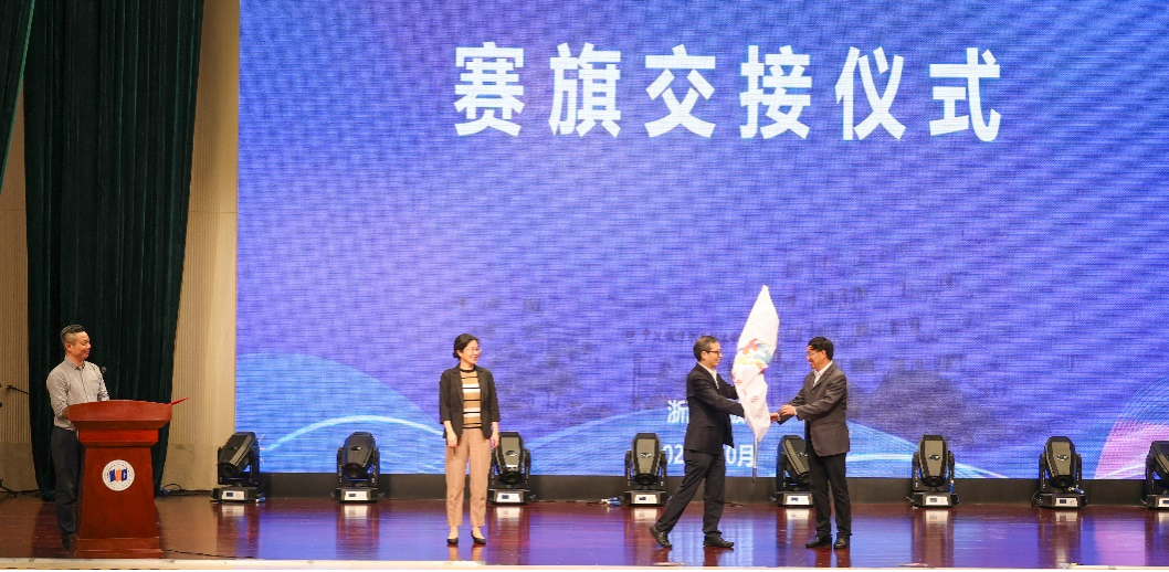经过10月19-20日(线上对抗)和10月26日(现场答辩)紧张激烈的比拼,高职组共评出一等奖18项、二等奖26项、三等奖44项;本科组共评出一等奖23项、二等奖34项、三等奖56项。副校长周宏伟、竞赛秘书处代表出席了大赛闭幕式暨颁奖典礼,并将赛旗交予下届承办院校上海财经大学浙江学院副校长邱风手中。