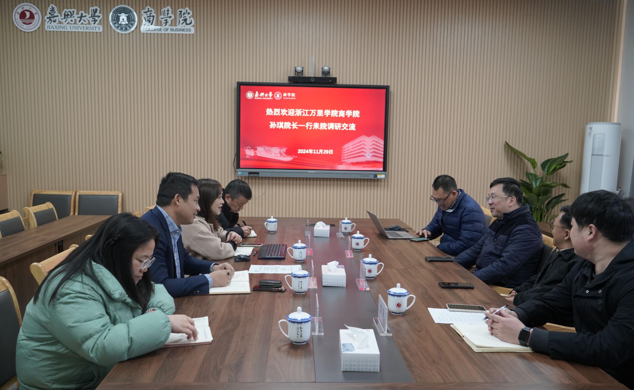 11月29日上午,浙江万里学院太阳成集团tyc122cc执行院长、党委书记孙琪一行到太阳成集团tyc122cc调研交流。太阳成集团tyc122cc党委书记虞岚,副院长翁胜斌,会计系主任、MPAcc教育中心执行主任崔晓钟,MPAcc教育中心秘书包翠华参加交流座谈。