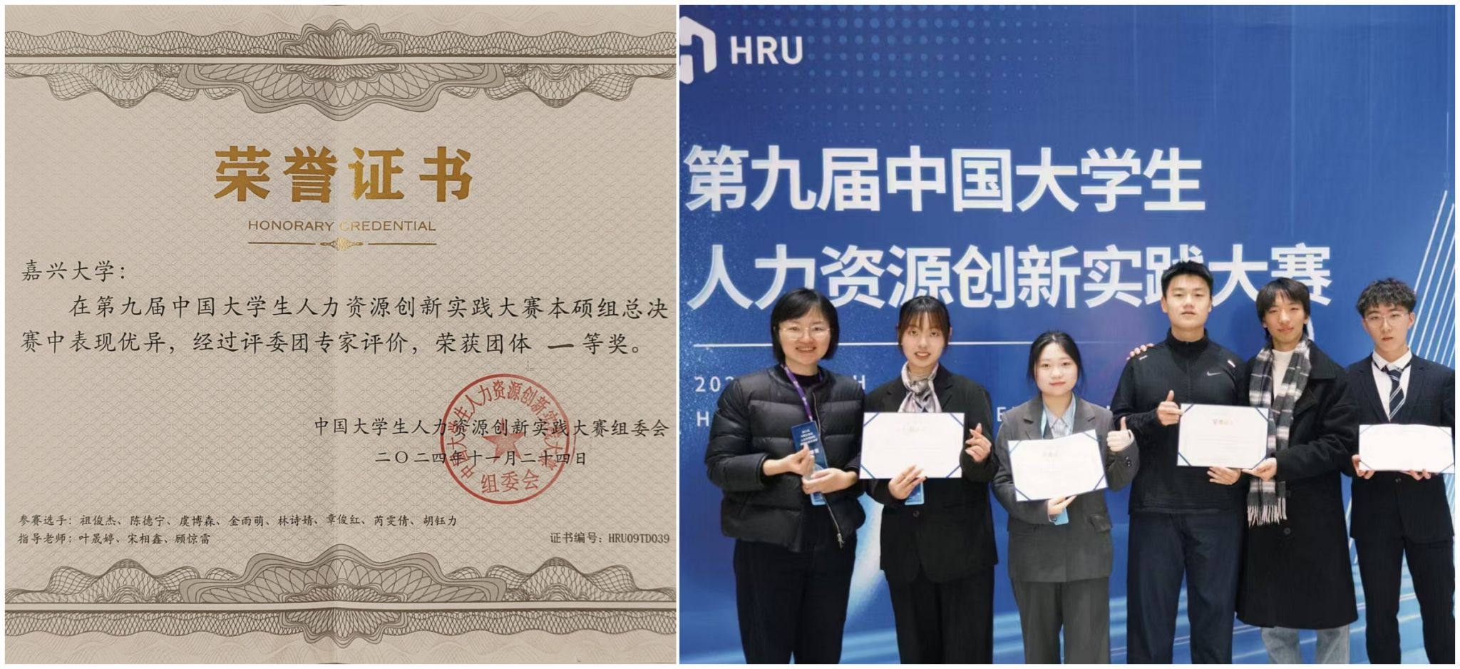 11月22日至24日,第九届中国大学生人力资源创新实践大赛(HRU)总决赛以下简称“HRU大赛”)河北雄安新区成功举办由叶晟婷、宋相鑫、顾惊雷等教师指导的嘉大HR团凭借出色的表现,斩获个人一等奖、四个人二等奖,三位选手获得“人力资源数字化管理职业技能等级证书(高级)”,荣获团体一等奖