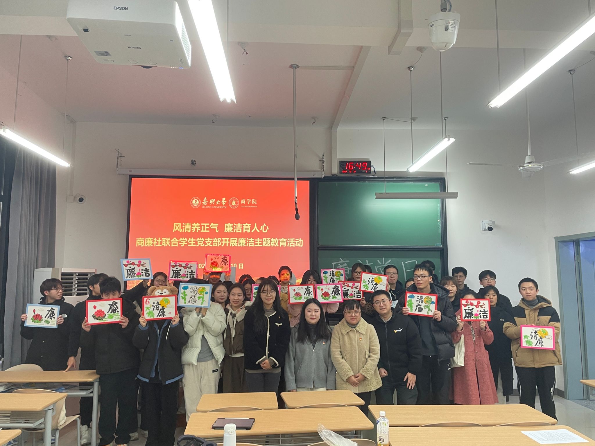 12月10日下午太阳成集团tyc122cc商廉社携手会计硕士研究生党支部、会计专业学生一党支部和会计专业学生二党支部,在尚德楼143举办了“风清养正气 廉洁育人心”为主题的廉洁教育专题活动。本次活动吸引了80余名师生热情参与。活动旨在借助多元化的文化展现与实践操作,加强社团成员及支部党员的廉洁自律意识,进一步推动党风廉政建设与廉洁文化的深度融合。