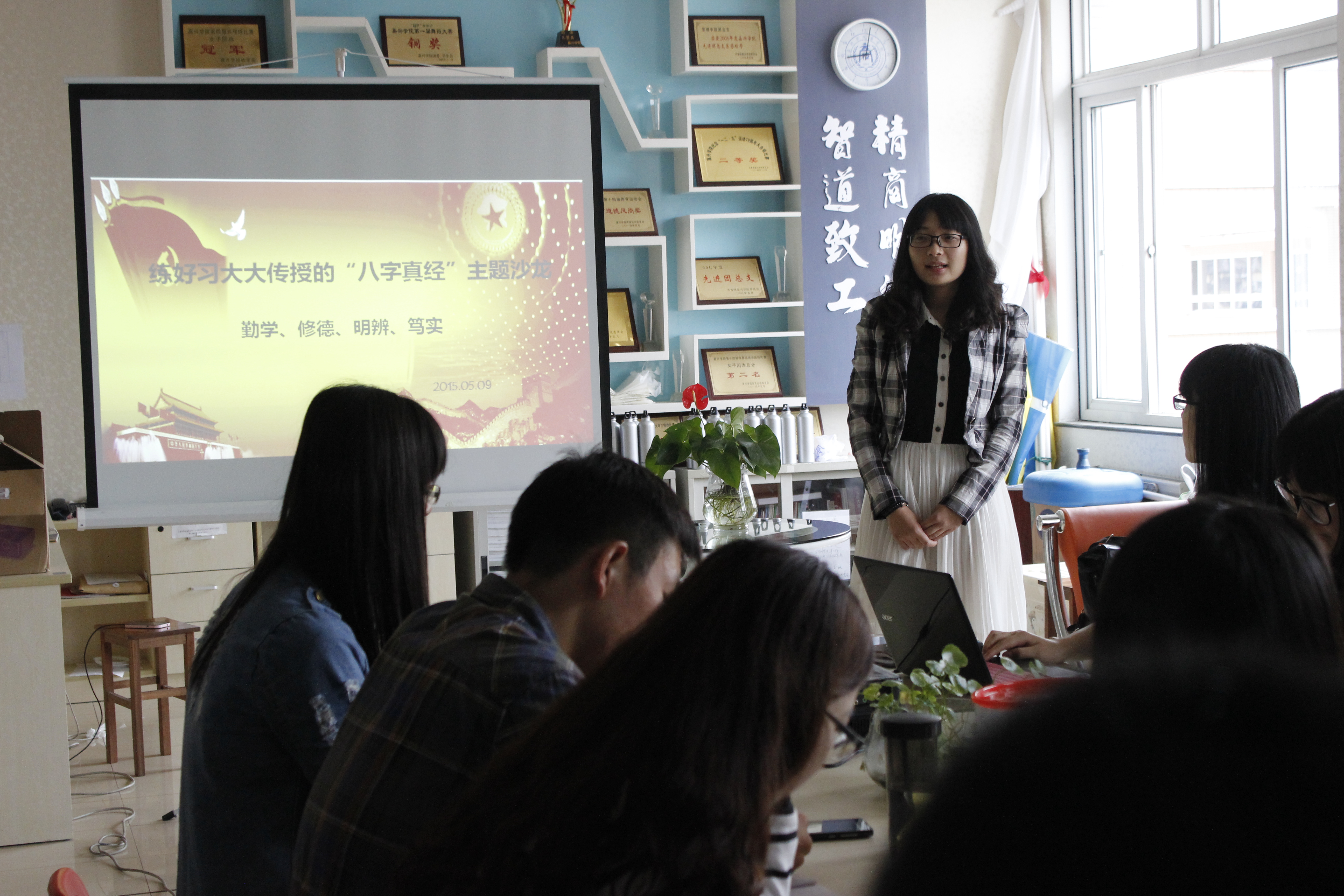 主题沙龙从不同班级开展的学习情况,细致地交流分享了的“八字真经”学习心得和学习的经验,鼓励和带动更多同学更有效的践行“八字真经”。