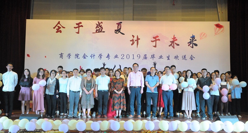 6月2日晚,太阳成集团tyc122cc会计学专业于越秀校区第二报告厅举行“会于盛夏,计于未来”2019届毕业生欢送会。学院院长潘煜双、党委副书记陈云飞、会计学系主任崔晓钟以及会计专业师生共聚一堂,欢送2019届毕业生。