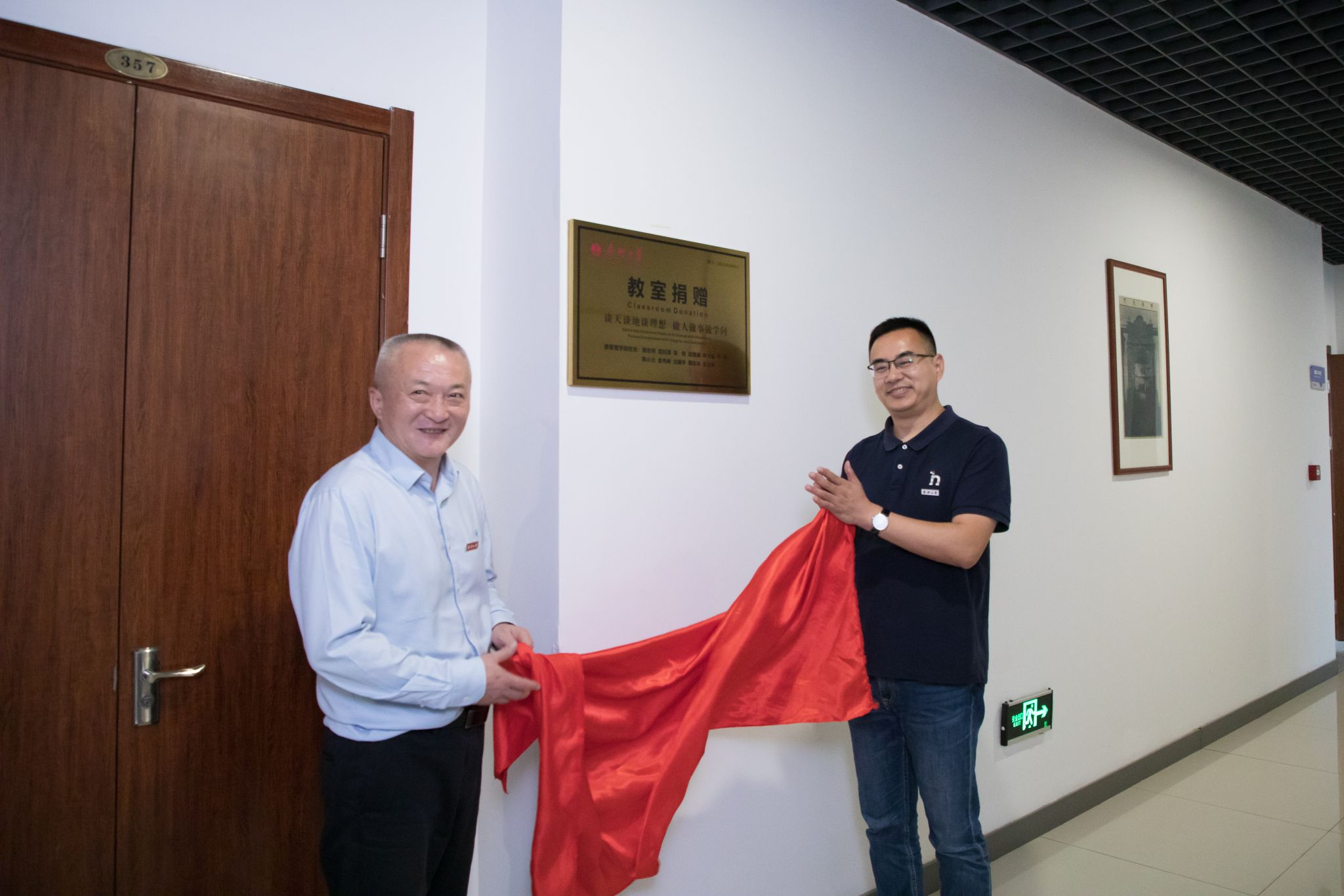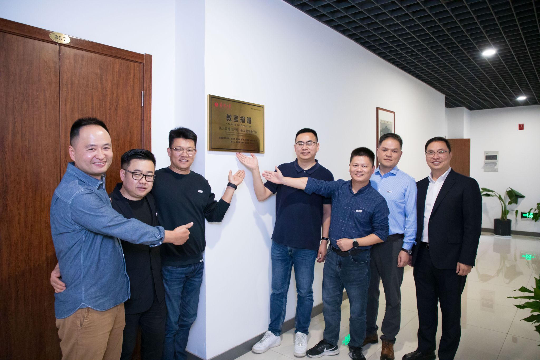 李勇与俞秀峰校友共同为捐赠教室揭牌,这间编号为“JSJZ20240011”的教室承载着校友们对学弟学妹们的殷切期望。