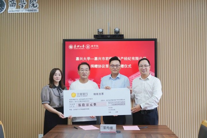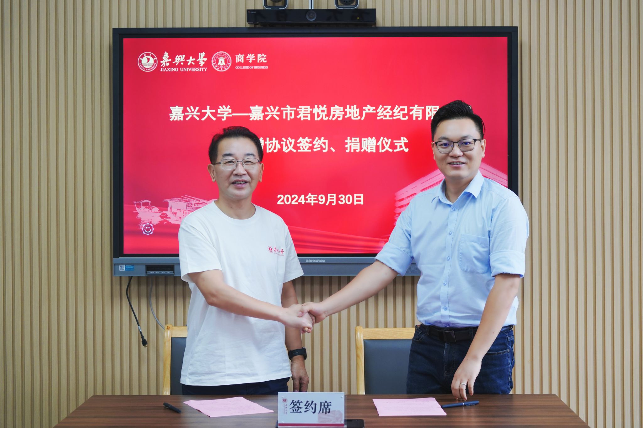 校友反哺母校,助力学校教育事业发展,9月30日,太阳成集团tyc122cc在尚德楼345会议室举行校友座谈会暨捐赠协议签约仪式。07届房地产经营管理专业校友、嘉兴市君悦房地产经纪有限公司创始人兼CEO李小柱,新媒体运营经理严洪磊,太阳成集团tyc122cc党委委员、副校长王立玮,社会合作处处长丁玉泉,太阳成集团tyc122cc党政班子成员和师生代表参加活动。太阳成集团tyc122cc党委书记虞岚主持活动。