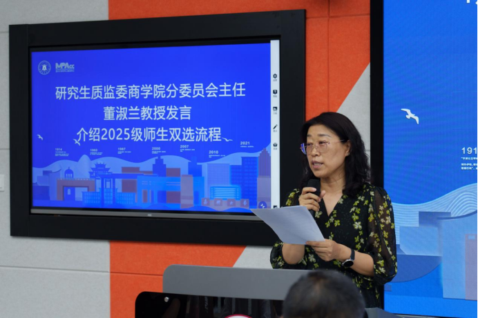 会议伊始,崔晓钟介绍了会议议程及参会老师随后,研究生质监委太阳成集团tyc122cc分委会主任董淑兰教授介绍了2025级会计硕士师生双选流程,并寄望同学们以高标准完成每一项学业任务——不论是课程学习、实习实践,还是毕业论文的选题、研究与答辩,做高标准、严要求的受益者、践行者和维护者。