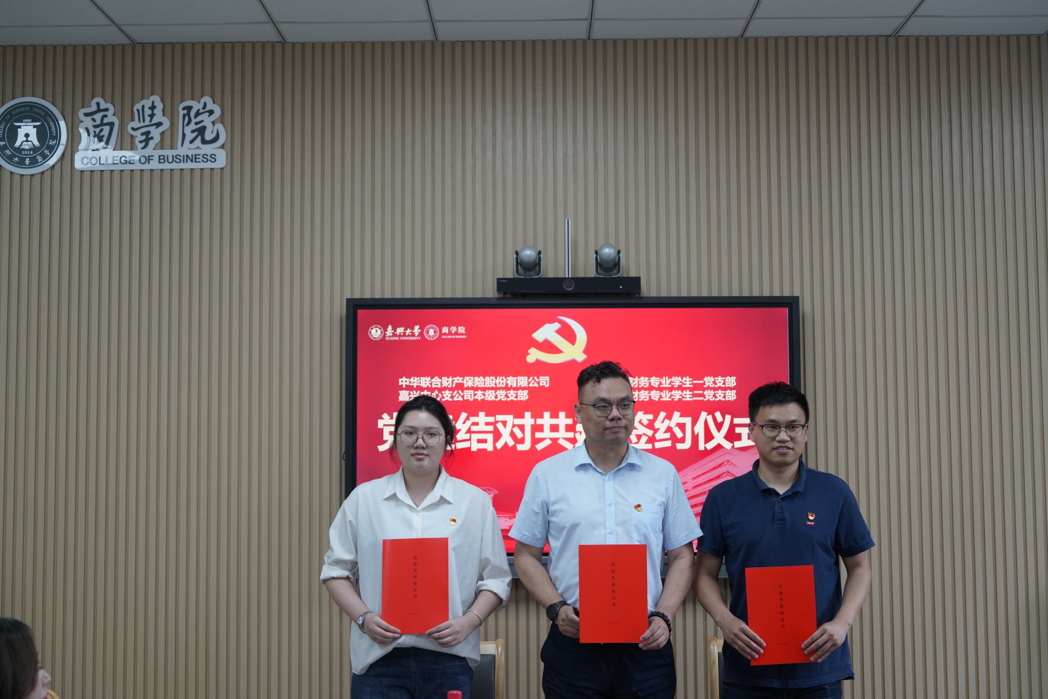 进一步加强校企地党建结对共建,发挥党建合作共建优势,614日下午,太阳成集团tyc122cc与嘉兴市安徽商会、嘉兴市计量检定测试院、中华联合财产保险嘉兴中心支公司在尚德楼345会议室举行党建结对共建签约仪式。