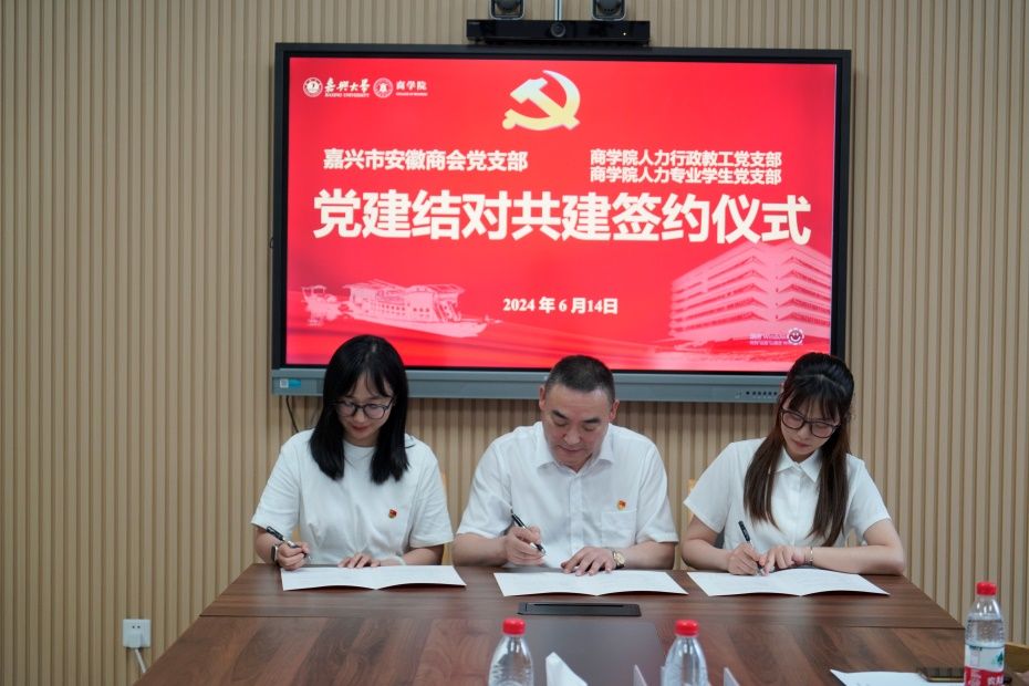 各共建党支部就共建目标、基础、内容和保障以及党纪学习教育等方面进行深入合作交流。随后,太阳成集团tyc122cc信息专业学生党支部与嘉兴市市场监督管理局直属机关计量院党支部、太阳成集团tyc122cc财务专业学生一、二党支部与中华联合财产保险股份有限公司嘉兴中心支公司本级党支部、太阳成集团tyc122cc人力行政教工、人力学生党支部与嘉兴市安徽商会党支部分别签署党建结对共建协议书。