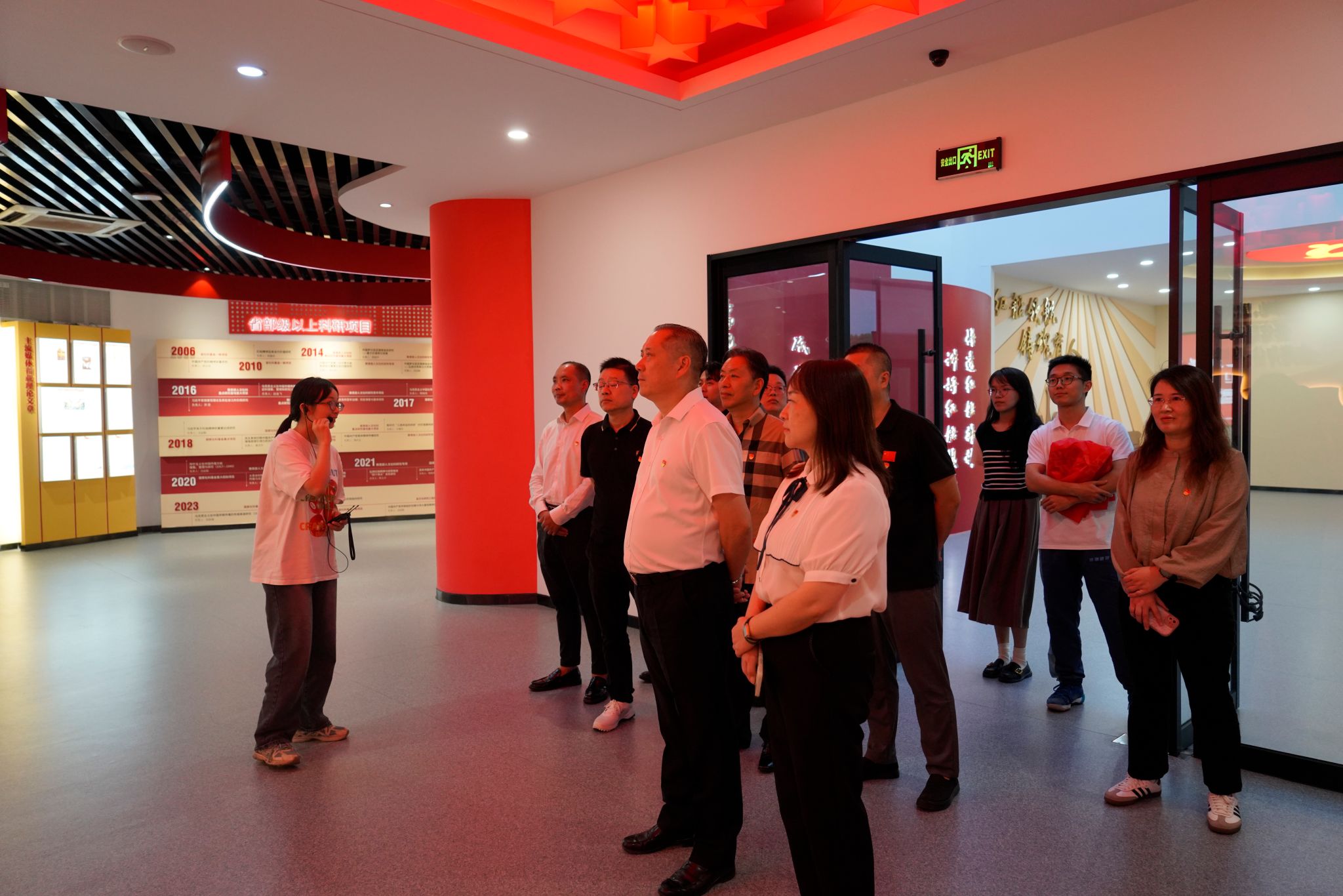 在讲解员的带领下,双方党委参观学习了太阳成集团tyc122cc红船精神育人成果展示馆和经济管理国家级实验教学示范中心,一同学习红船精神办学育人的故事,汲取砥砺奋进的力量。