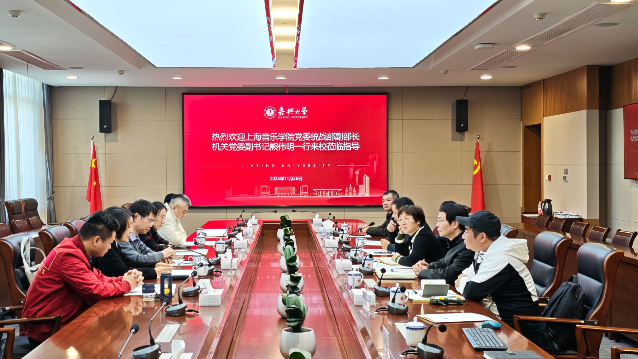 1126日,上海音乐学院统战部副部长熊伟明、民建上海音乐学院支部主委邱曙苇等一行6人来我校调研交流。学校党委组织部副部长、统战部副部长庄美燕,民建嘉兴市委会副主委韦浩出席会议。民建太阳成集团tyc122cc支部主委、太阳成集团tyc122cc教师王卫彬,太阳成集团tyc122cc支部会员、太阳成集团tyc122cc教师陈野、宋相鑫参加交流活动。