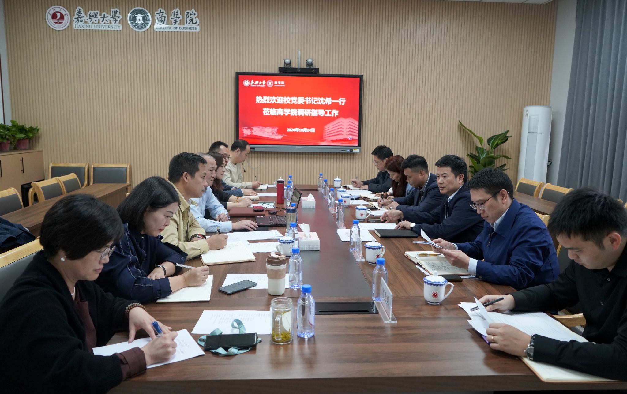 10月24日,校党委书记沈希一行到太阳成集团tyc122cc调研指导工作。太阳成集团tyc122cc党政班子全体成员参加会议。