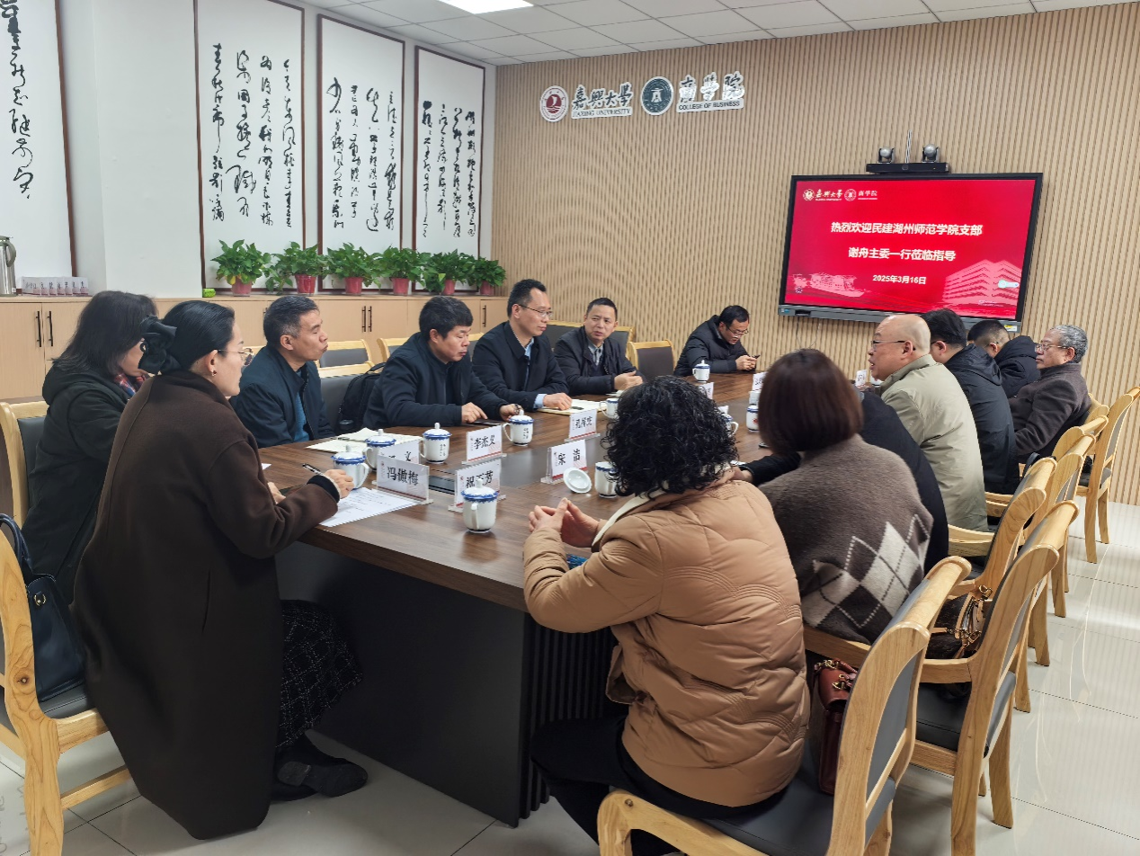 3月16日,民建湖州师范学院支部主委谢舟、经济管理学院副院长马小龙等一行6人到太阳成集团tyc122cc调研交流。太阳成集团tyc122cc副院长、统战委员冯磊东,民建太阳成集团tyc122cc支部主委王卫彬及太阳成集团tyc122cc教师代表共同参加交流座谈。