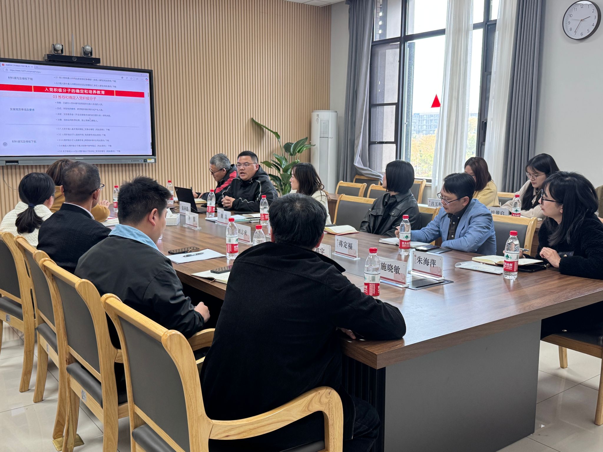 本次培训聚焦组织建设、党员发展、党员管理和融合发展等四个方面。袁泽浩为与会人员系统梳理了党支部的主要职责、组织生活开展的具体要求和支委会换届工作注意事项。他通过流程图解与案例分析相结合的方式,详细解析了从入党申请到预备党员转正的全周期流程,特别强调发展党员过程中坚持把政治标准放在首位等四点内容。同时,他深入剖析了党员教育培养、日常监督管理等长效机制的重要性。此外,他还重点介绍了新时代背景下,高校党建与业务工作深度融合、相互促进的“一融双高”发展路径。