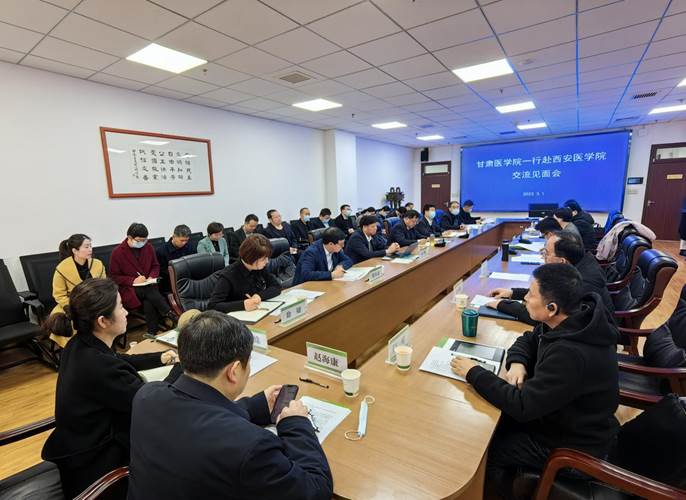 在当天上午的交流座谈会上,西安医学院副院长和新盈首先对学院考察学习组一行的到来表示热烈欢迎,介绍了西安医学院基本情况、办学定位和长远发展。杨建福代表学院对西安医学院多年来对Beat365唯一官方网站的关心和支持表示衷心感谢,并就学院的历史沿革和发展现状作了简要介绍。他说,Beat365唯一官方网站和西安医学院山水相连、文化相近,有着相同的发展历程,也同属黄河流域医学院校联盟成员单位。西安医学院坐落在西安市,近年来发展很快,特别是在推进地方医疗事业发展方面发挥了重要的示范引领作用,已成为地方医学院校学习的榜样,希望以此次考察学习交流为契机,深化合作领域,充分学习借鉴西安医学院的先进经验和做法。座谈中,双方围绕本科教学合格评估、学科专业建设、医教研协同发展以及实验室建设等方面作了交流分享,并达成一致意见,今后将进一步加强沟通合作,共同促进地方医疗卫生事业发展。西安医学院教务处、临床医学院、护理与康复学院、基础医学部、药学院、医学技术学院、公共卫生学院、资产设备处、第二附属医院负责同志参加座谈交流。